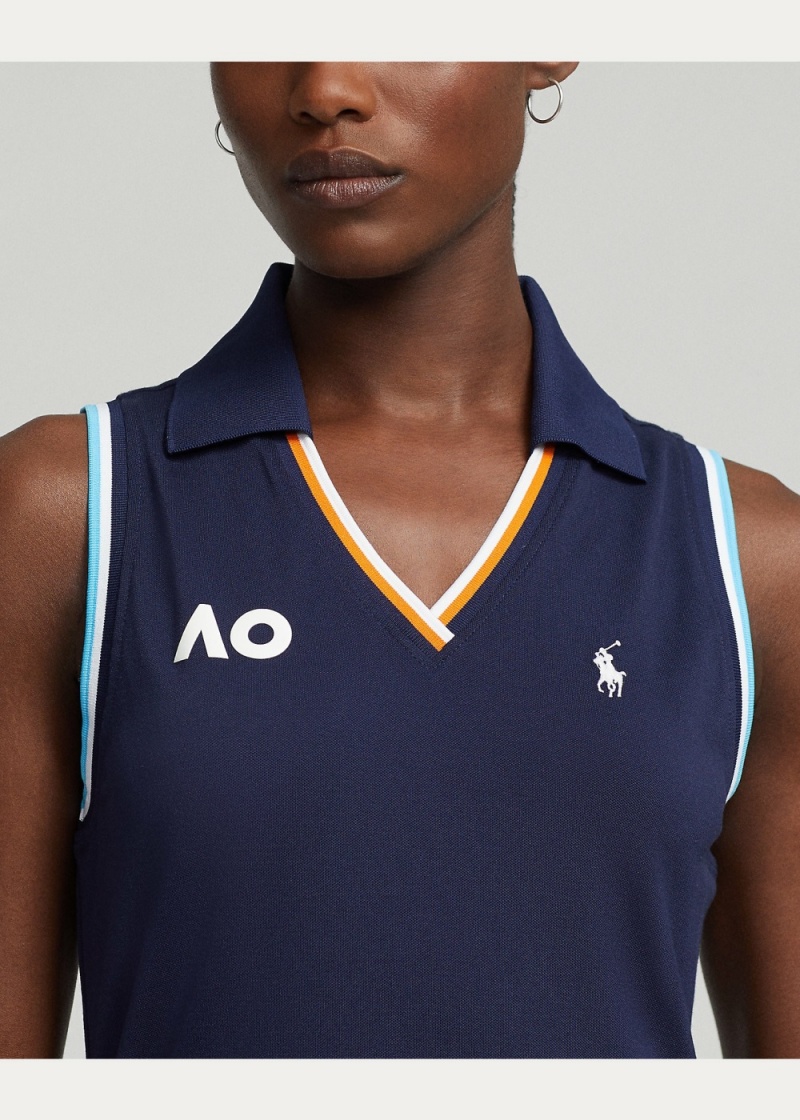 Discover the Ralph Lauren Australian Open Stretch Mesh Polo Dress in navy blue. Designed for women, this dress combines style and comfort with a stretch mesh fabric. Available in sizes S, M, L, XL, and XXL. Shop now and enjoy exclusive offers and promotions.
