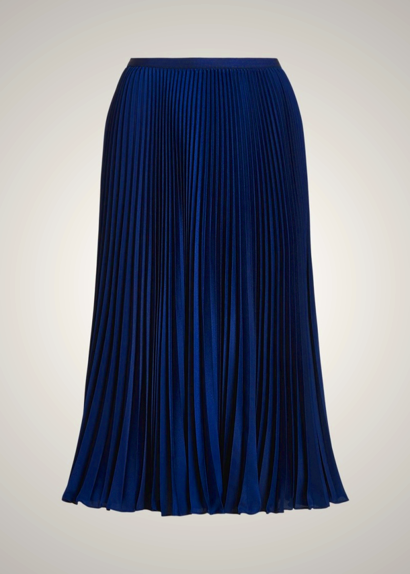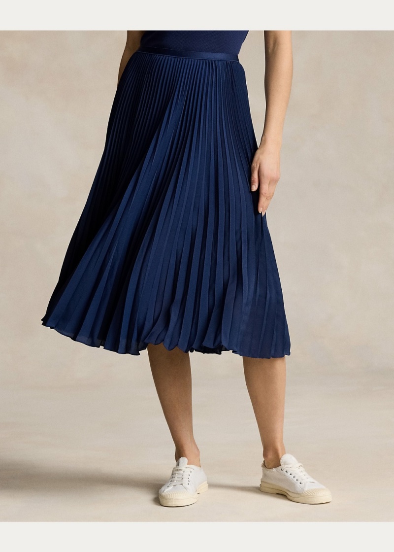 A stylish navy blue pleated georgette skirt by Ralph Lauren for women. Available in multiple sizes with free shipping and returns.