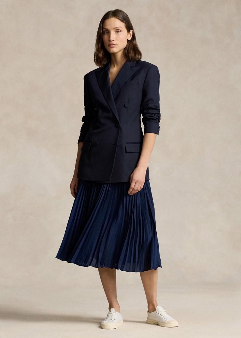 Elevate your wardrobe with this elegant Ralph Lauren pleated georgette skirt in navy blue. Designed for women, it offers a sophisticated fit and premium fabric. Shop now for the best price and enjoy free shipping and returns.