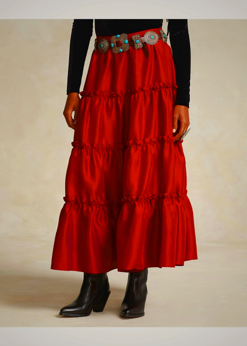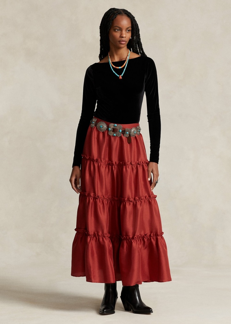 Elegant silk maxiskirt by Ralph Lauren PRL x Naiomi Glasses. Designed for comfort and style, available in black.