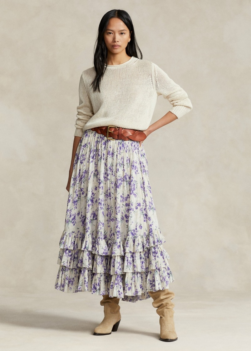 Discover the Ralph Lauren Ruffled Crinkled Cotton Gauze Maxi Skirt in black. Featuring a flowing design with ruffled details, this skirt is perfect for a stylish and comfortable look. Available in sizes S to XXL. Compare prices and enjoy discounts up to 91%, free shipping, and free returns.