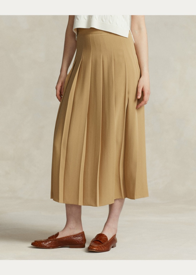 Ralph Lauren Satin Pleated A-Line Midi Skirt for Women