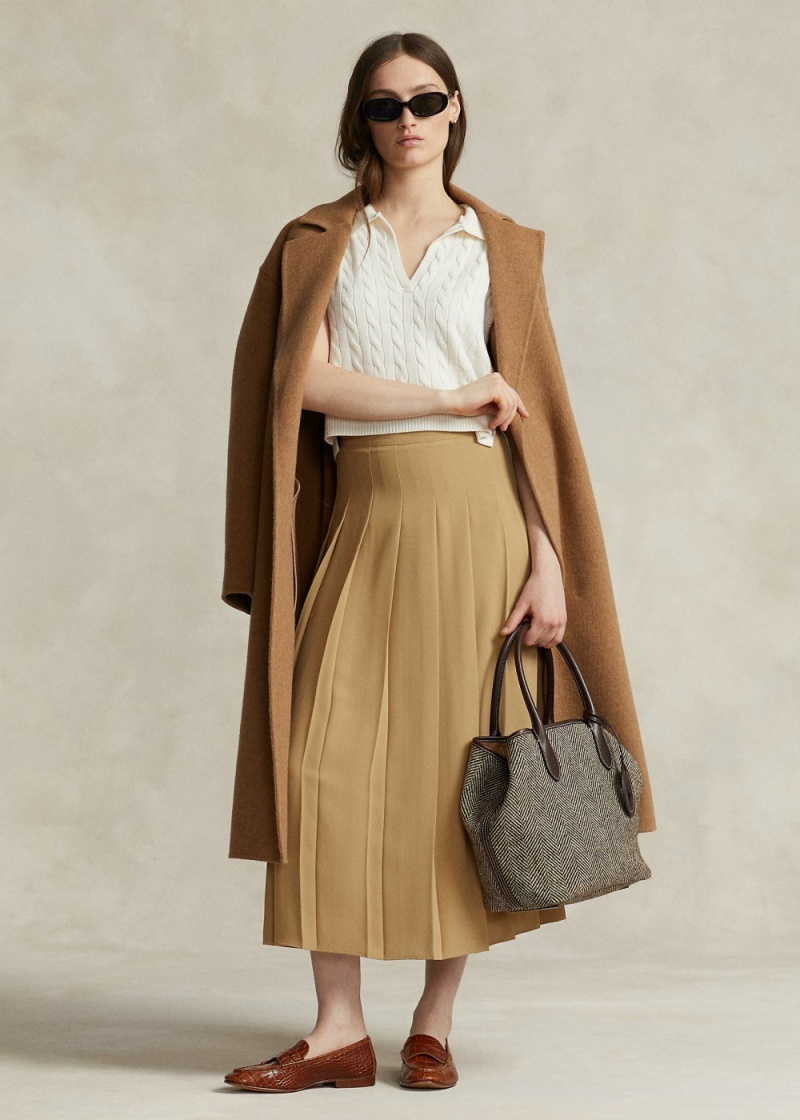 Elegant Ralph Lauren satin pleated A-line midi skirt for women. Features a flattering fit and premium fabric. Enjoy free shipping and returns.