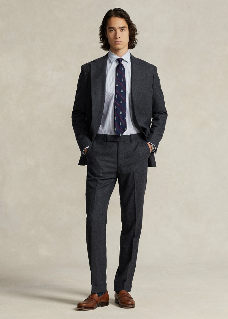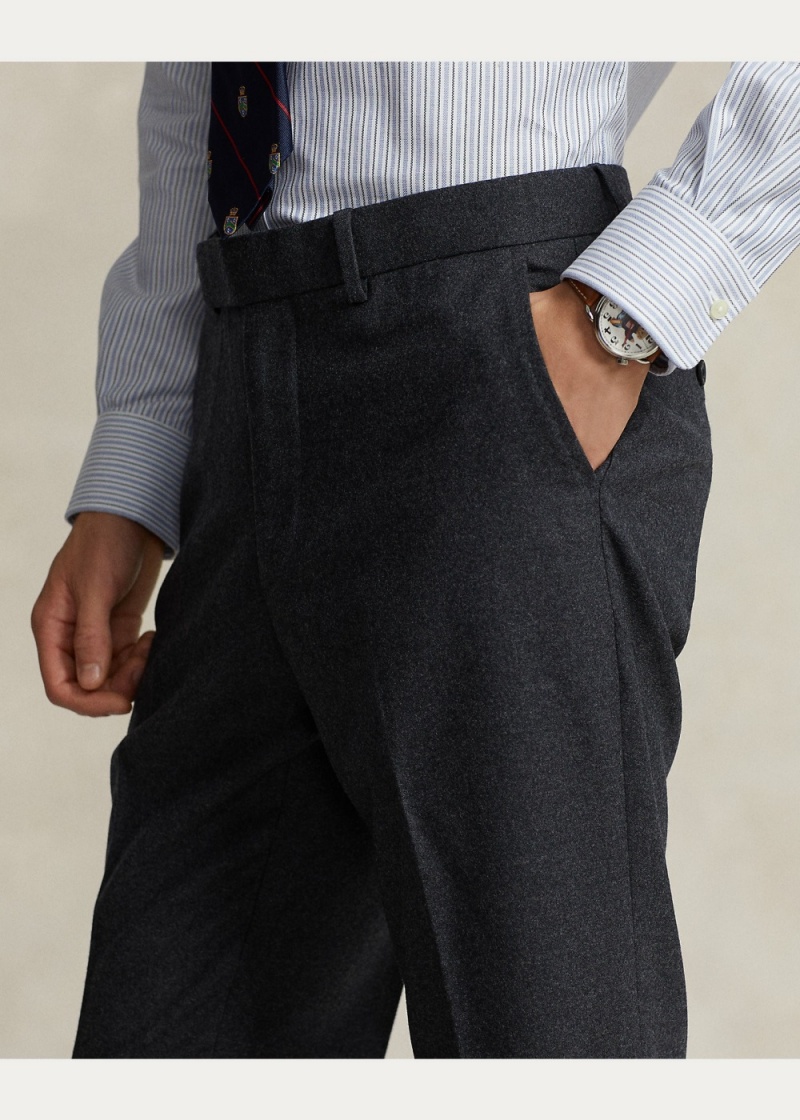 Upgrade your wardrobe with the Ralph Lauren Stretch Lana-Blend Flannel Suit Pants. Designed for comfort and style, these gray suit pants feature a modern fit and stretch fabric for ease of movement. Perfect for both professional and casual settings. Available in sizes S to 3XL.