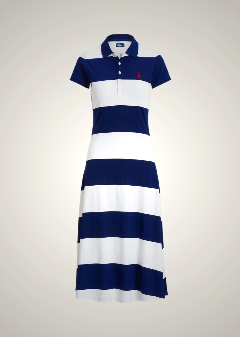 1 review for Ralph Lauren Striped Cotton Mesh Polo Dress for Women | QALO41935