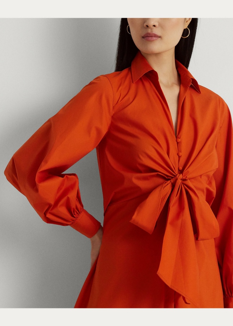 Discover the Ralph Lauren Tie-Front Shirtdress in a stylish cotton blend. Perfect for women looking for comfort and elegance. Available in vibrant orange and multiple sizes from XS to XXL. Find the best price and exclusive offers at our store.