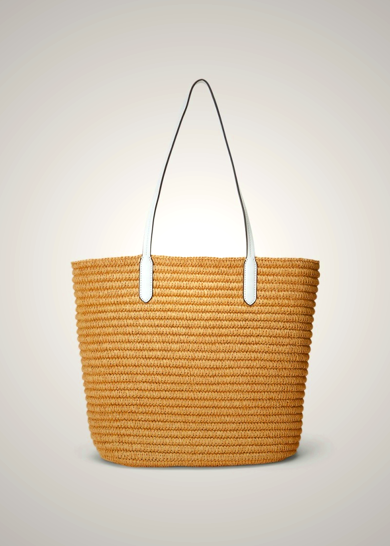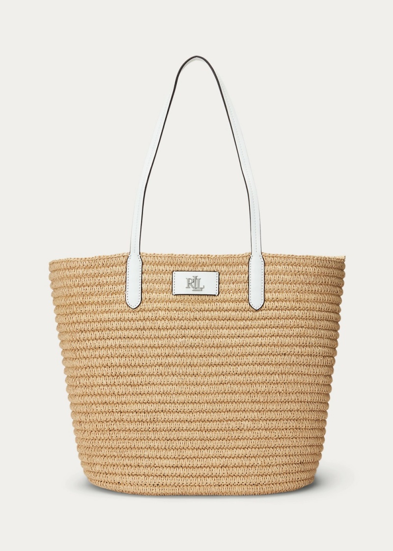 Elegant Ralph Lauren tote bag with leather trim in straw color. Ideal for women seeking style and functionality. Free shipping and returns available.